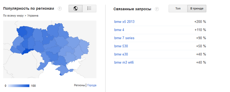 Гео тренды Гугл в Украине
