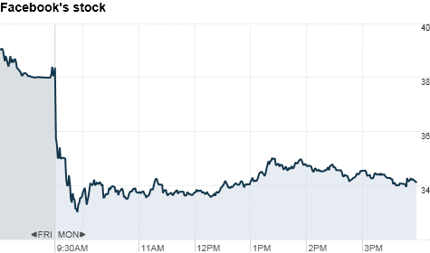 Как сообщают западные СМИ, в минувший понедельник, 21 мая 2012 года, практически сразу после открытия торгов на бирже Nasdaq акции Facebook упали в цене более чем на 8%. Таким образом, цена одной акции крупнейшей в мире соцсети составила 34 долл. США за бумагу.
