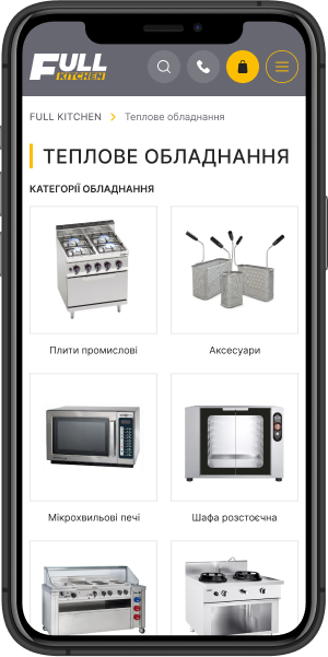 Разработка функционального интернет-магазина для компании Full Kitchen, занимающейся реализацией оборудования для заведений общепита. Ассортимент продукции включает большой перечень номенклатурных групп с множеством товаров в каждой категории. Это определило основные задачи проекта – качественную группировку категорий, исходя из специфики использования, а также возможность потенциальным покупателям быстро и взаимодействовать с предложенным ассортиментом оборудования, легко подбирать интересующие позиции и оформлять заявки на покупку.