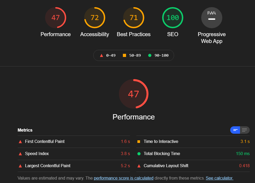 оцінка швидкості в Lighthouse