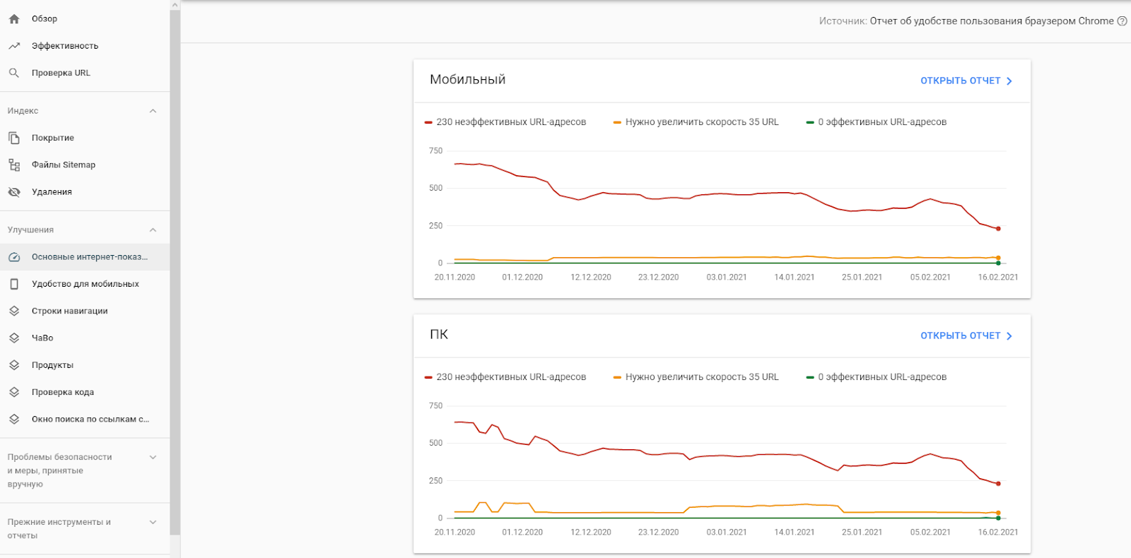 На даний момент мета полягає в тому, щоб не менше 75% URL-адрес вашого сайту відповідали вимогам Web Vitals по кожному з основних показників, для настільних комп'ютерів і мобільних пристроїв.